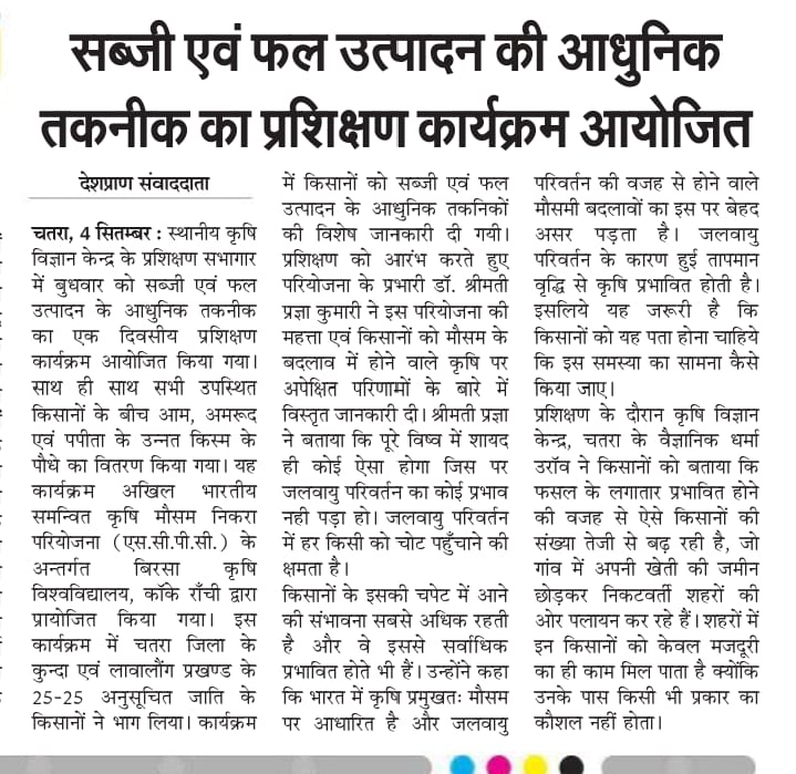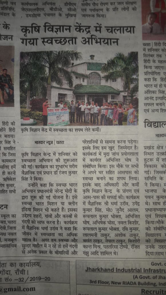 | 27 | अखबार की सुर्खियों में कृषि विज्ञान केन्द्र, चतरा। |