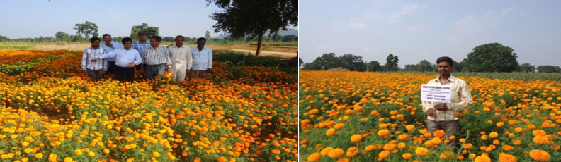 - KVK conducted frontline demonstrations (FLD) on marigold (Var. orange drop and lemon drop) in 1ha land of Promod Dangi.